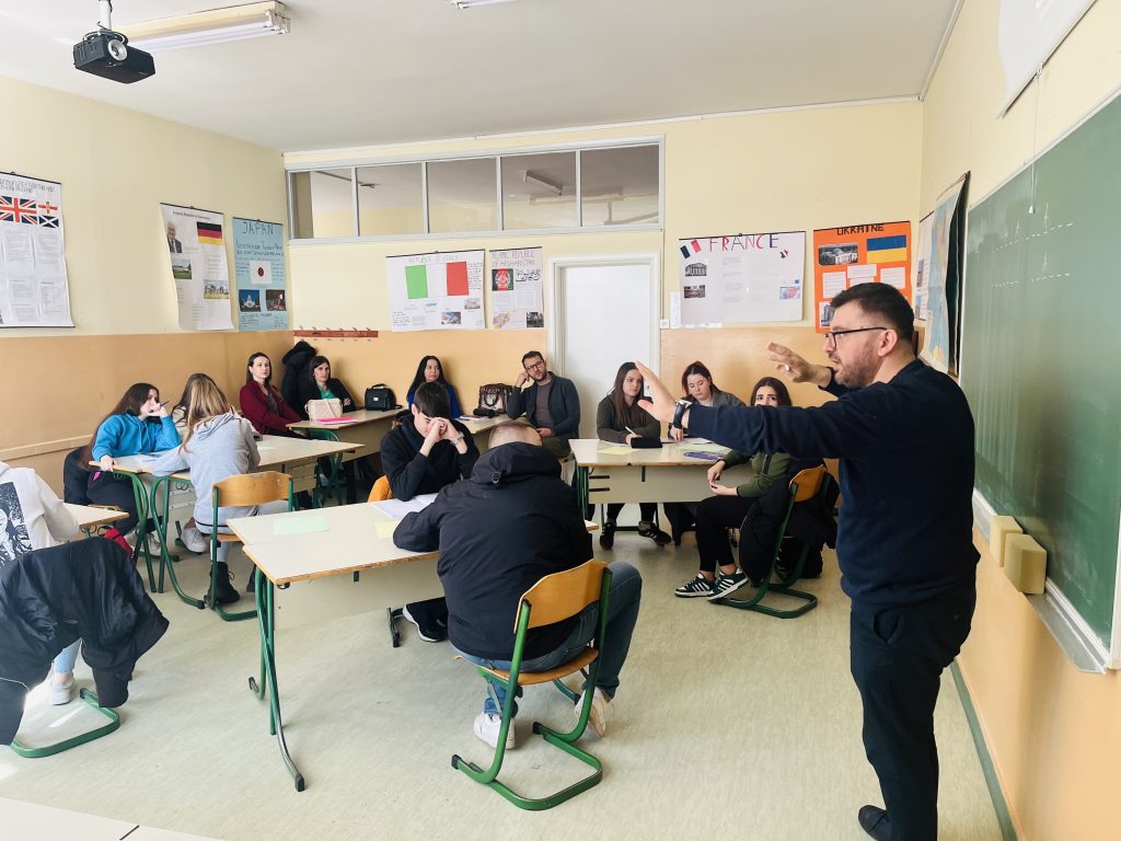 Danas, 25. februara 2025. godine, učenici IV-2a koji učestvuju u projektu “Slika moga grada” održali su zanimljivu i edukativnu prezentaciju o zgradi Predsjedništva Bosne i Hercegovine. Prezentacija je održana učenicima III-2a na času Građanskog obrazovanja/Demokratija i ljudska prava koju vodi profesor Igor Smiljanić.